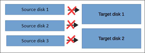 The number of physical disks on the target computer must equal or exceed the number of disks on the source computer.
