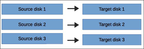 The physical disks on the target computer must be of the same size as the original disks or larger.