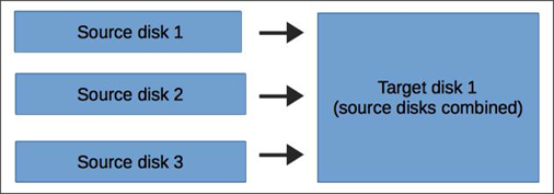 It is also possible to use one large physical disk for bare metal recovery. The disk is automatically formatted using the same partition table (GPT/MBR) that was used on the system disk of the source computer.