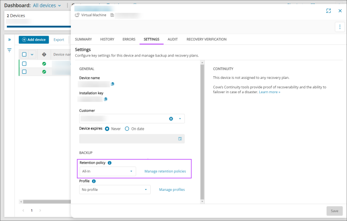 - Choose a new policy for the device