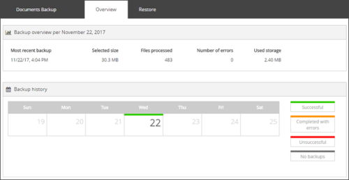 The Documents backups start right after installation completes and are repeated twice a day: