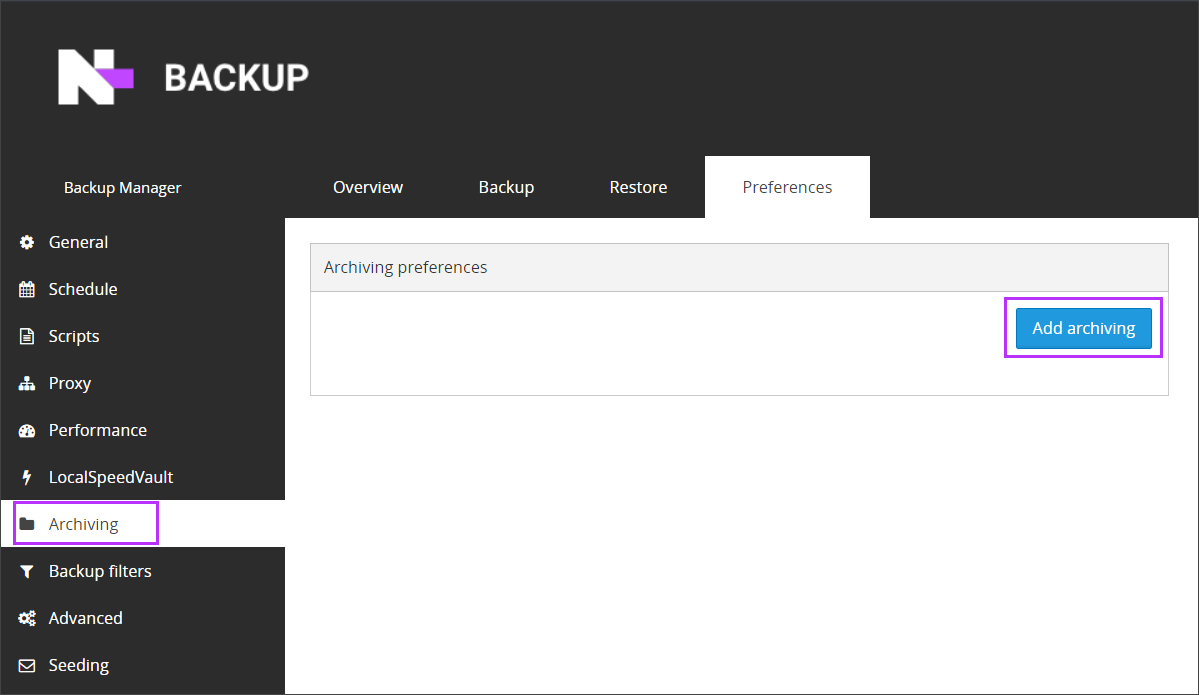 If needed, you can keep selected backup sessions in the storage after their retention period expires using the Archiving feature. Such sessions will not be deleted (unless you choose to do so manually).