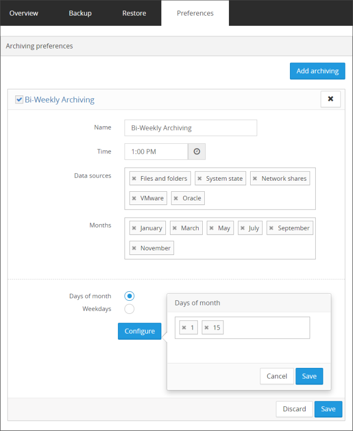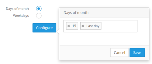 - Days of month: This will allow you to set the dates of days in the month you wish the archive to be set, for example the 15th of the month and the last day of the month: