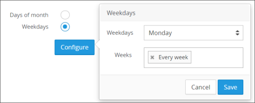- Weekdays: This will allow you to set the day of the week and which week of the month(s) selected in step #8 you wish the archive to be set, for example every Monday: