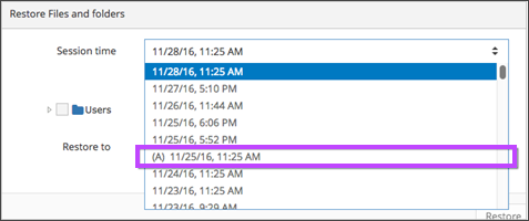 Data from archived sessions is recovered is the same way as from regular backup sessions. You will only notice that archived sessions have a special mark (A) in the Session time list which is intended to make it clear that the session is archived.