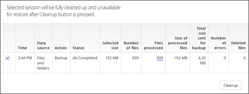 - Confirm your intention to clean up the selected sessions