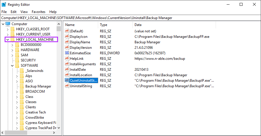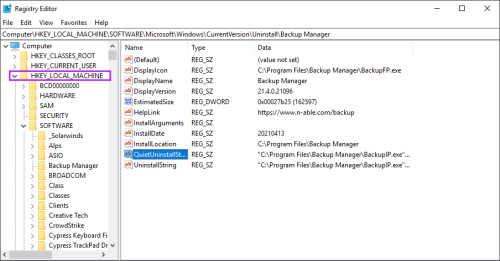 HKEY_LOCAL_MACHINE\Software\Microsoft\Windows\CurrentVersion\Uninstall\Backup Manager - Double-click