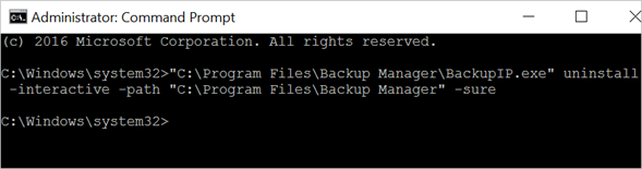 You can uninstall the Backup Manager through the command line on Windows. The feature has been available starting from version 16.10 released in October 2016.