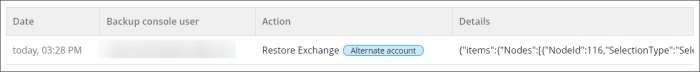 It is also possible to see whether restores were carried out to an alternative account in the Action column: