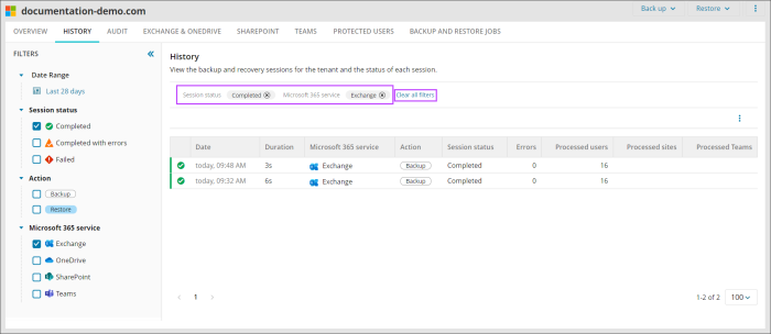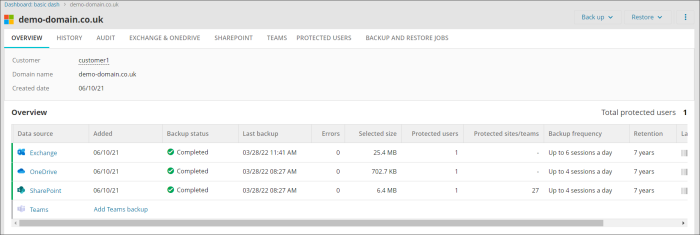 - Follow the Add Microsoft 365 domain steps for the relevant service in the Enable Backups page