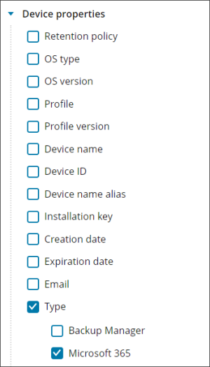 ATand the value of2to search for devices with the Account Type of Microsoft 365Full details on Advanced searching and the syntax and column codes to use can be found on Searching in Management Console