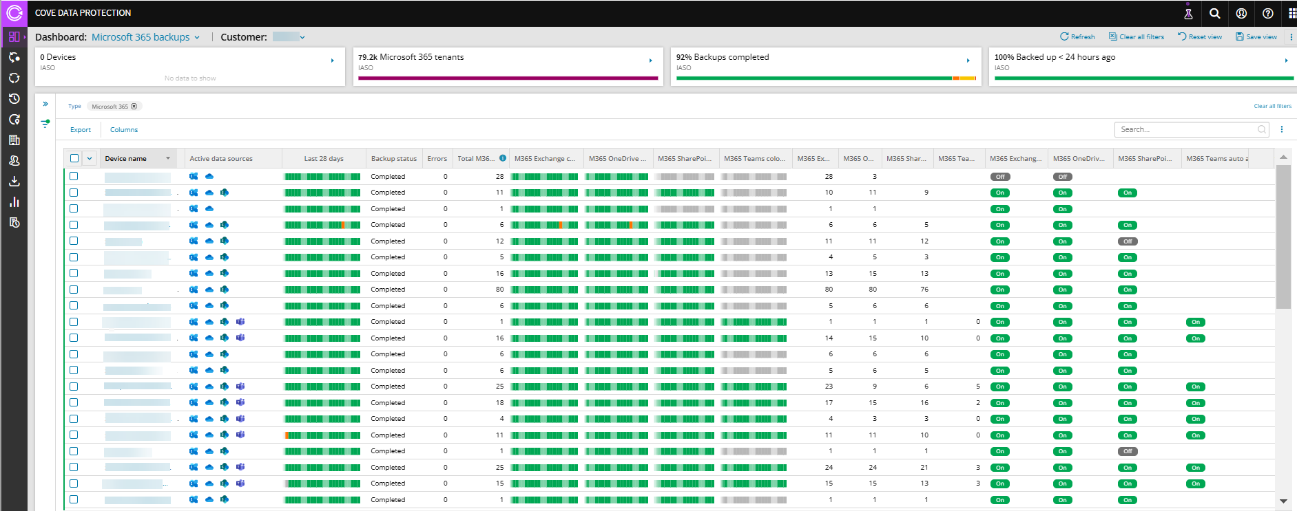 Users can view Microsoft 365 backups dashboard by navigating to: Backup dashboard > Microsoft 365 backup