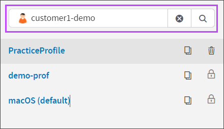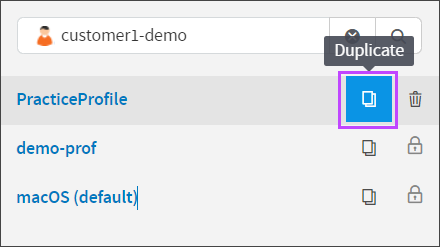 - Find the Profile you need to copy and click the duplicate icon to the right of the profile name