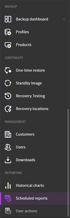 - Using the left-hand menu, navigate to Reporting > Scheduled Reports
