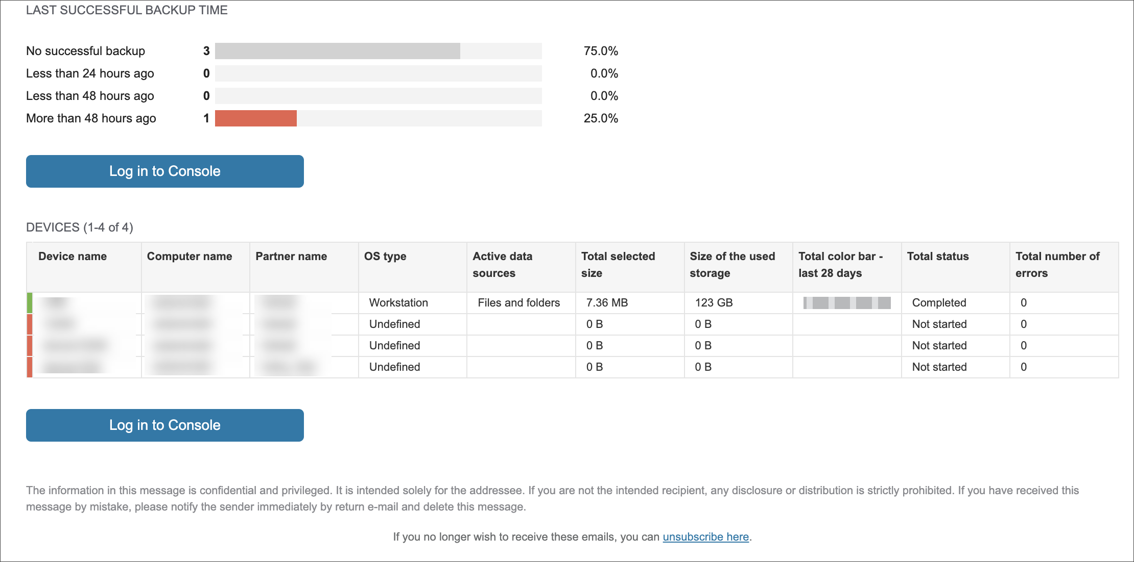 InProcessCount) – the number of devices on which a backup is currently running - Unsuccessful (