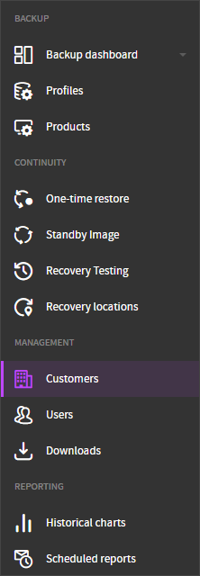 In the Management section of the vertical menu, click Customers to open the Customer Management window