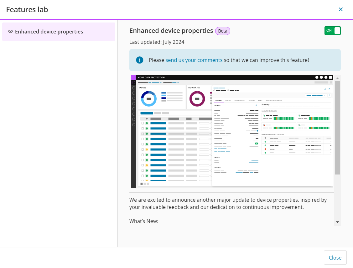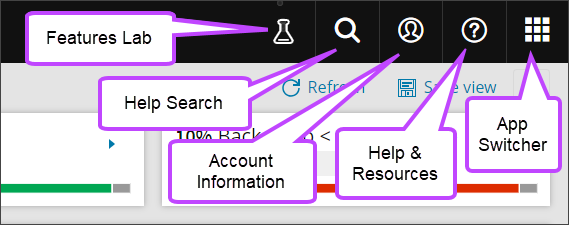 The Features Lab button allows you to enable or disable new features to the Management Console which are currently either in preview or beta.