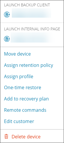 For Microsoft 365 devices, only the services configured will be displayed in the Action Menu. For example, if your domain only has SharePoint configured, you will not see an option for Backup Exchange Now, Backup OneDrive Now, Restore Exchange or Restore OneDrive.