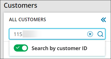 On the customer Management page, you may search the list of customers using the Customer name, or by using the Customer ID: