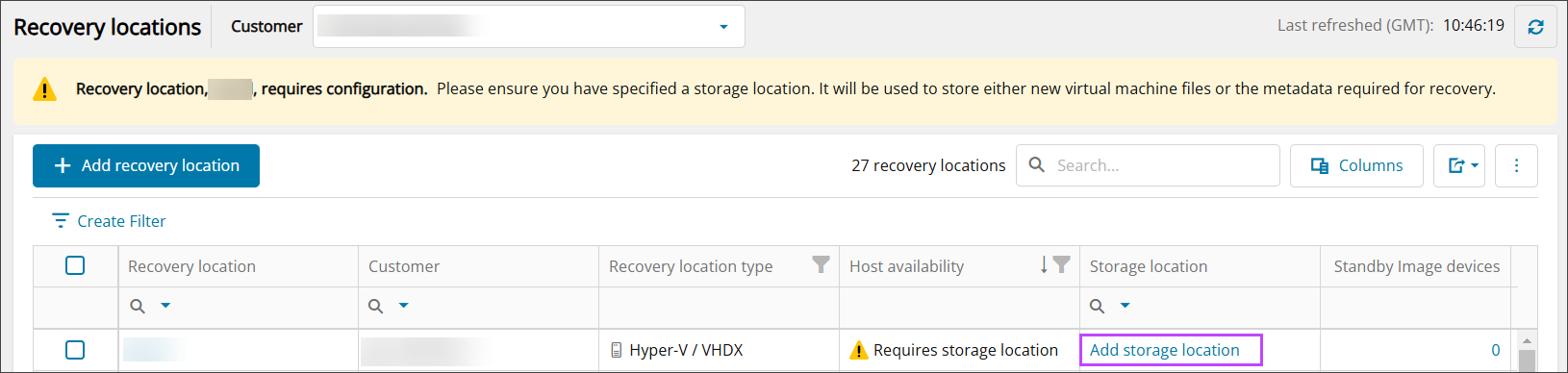 - Click Add recovery location at the top of the page