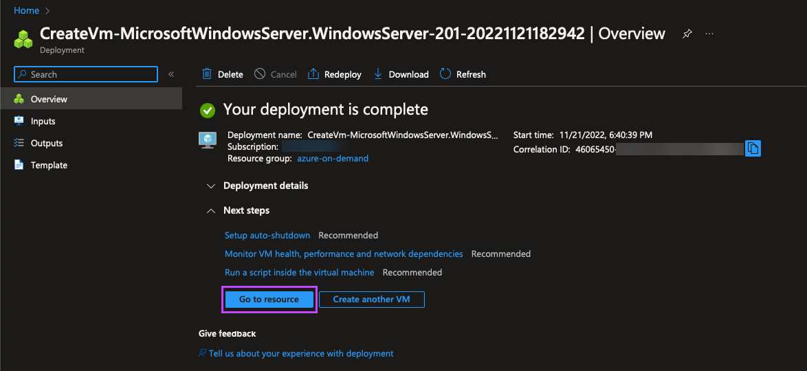 - A page will display with the progress of the deployment. Once deployment is complete, you are able to go to the resource by clicking Go to resource