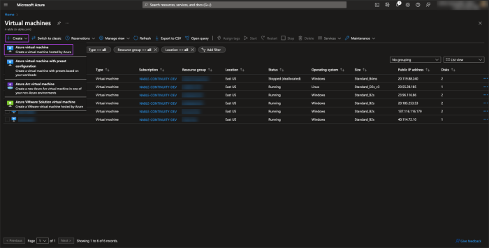 - On the Virtual Machines page, select + Create and select Azure Virtual Machine from the dropdown provided