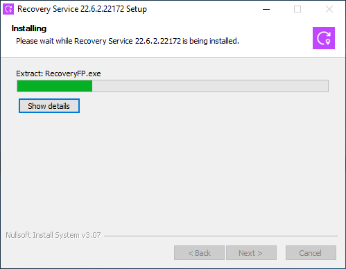 This is a one-time installer and can only be used to install a single instance of the recover service. The installer will fail if you attempt to use the same package for another installation.