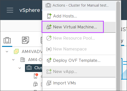 - Right click the cluster and select New Virtual Machine