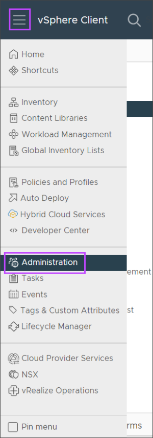 - Open the menu and navigate to Administration