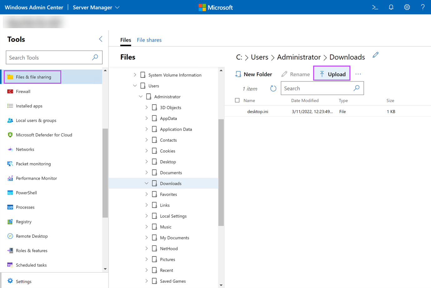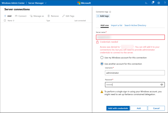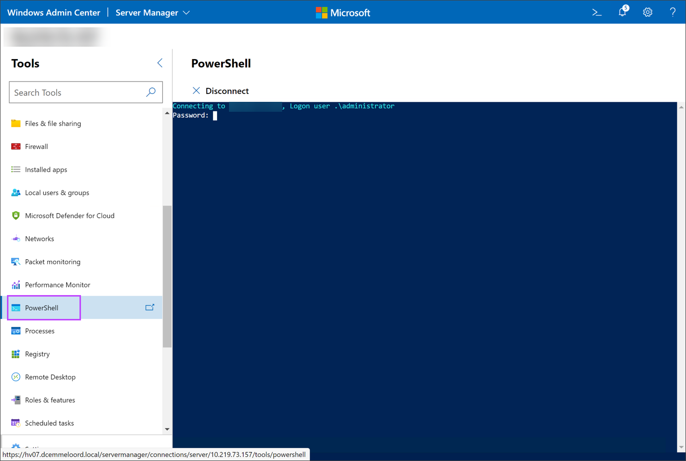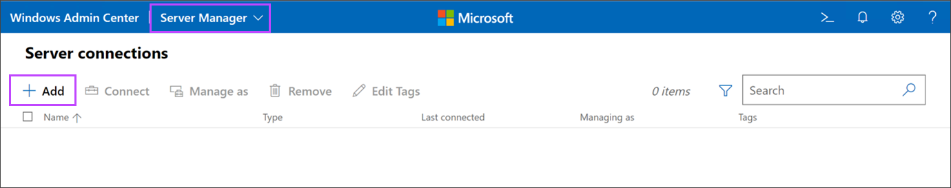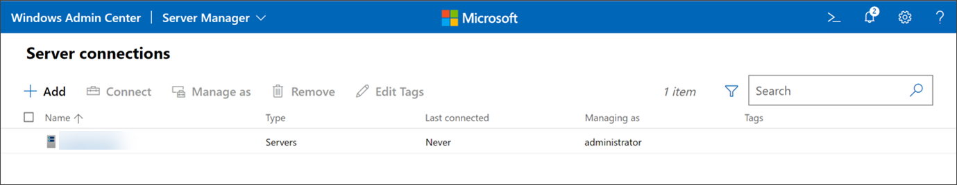 - In the Windows Admin Center, navigate to Server Manager then into Server Connections