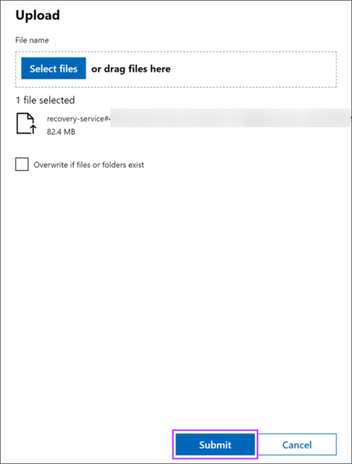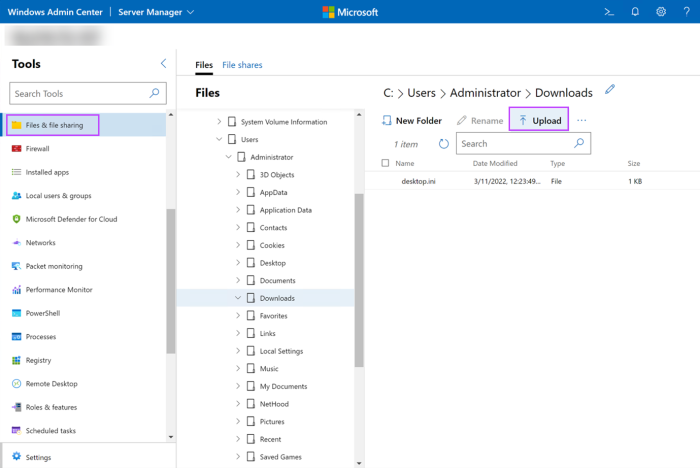 - Using the file structure, browse to the folder you want to upload the Recovery Location's recovery service installer to on the Hyper-V Server