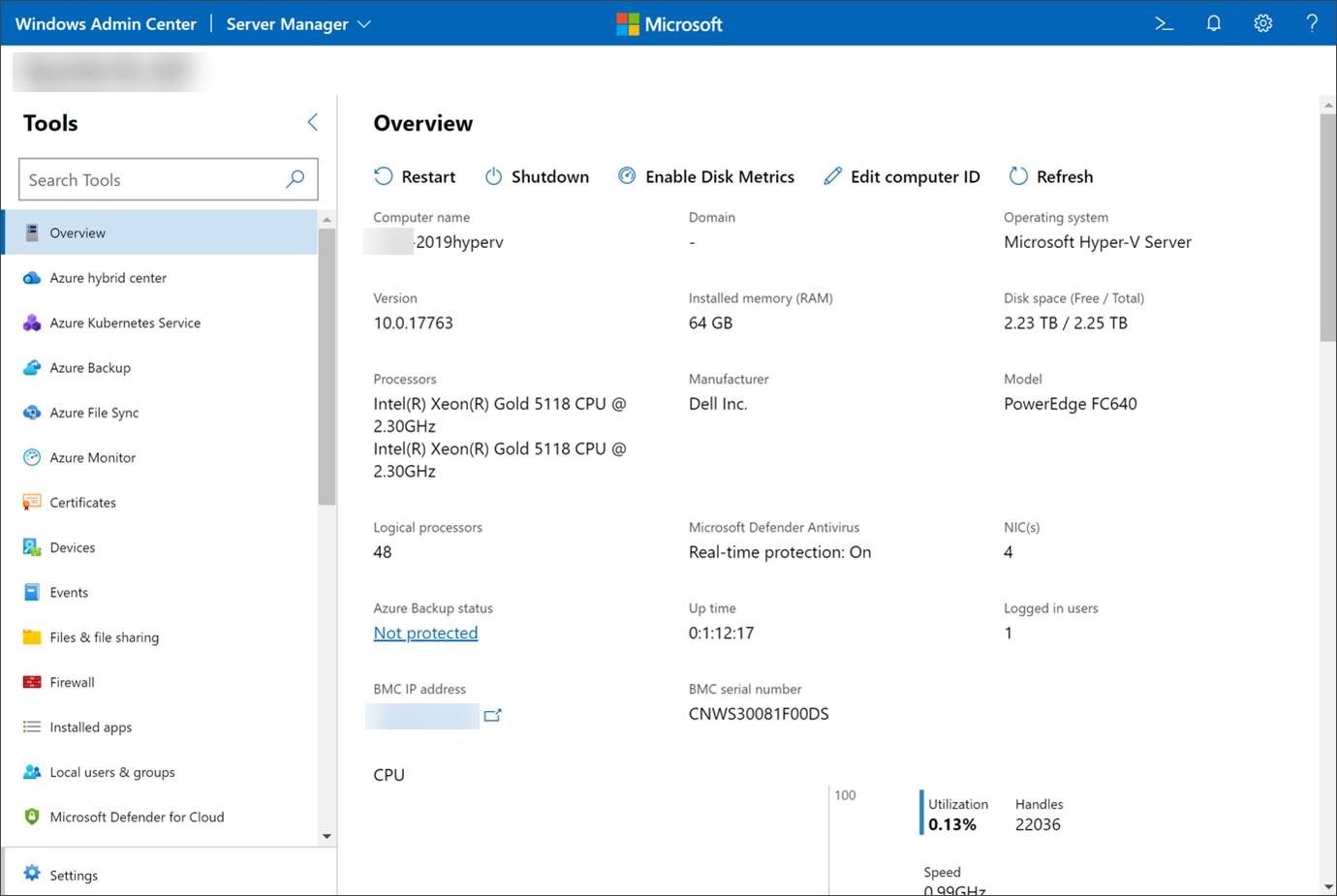 - Return to the Windows Admin Center on the management machine