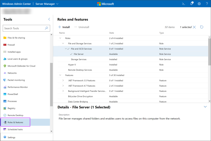 - Expand Roles > Files and Storage Services, select File and iSCSI Services