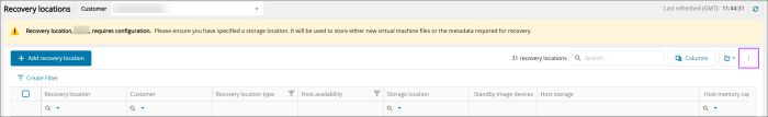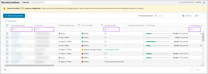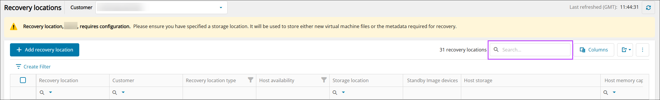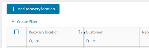It is possible to filter the list of Recovery Locations using filterable columns. Any column which is filterable is identified by the filter icon.