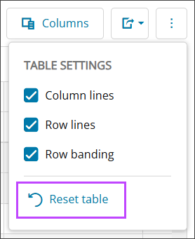 To reset the page view by reinstating removed columns and setting column widths back to their default: