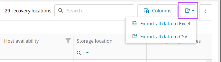 It is possible to export all data in the Recovery Locations page view. To do this: