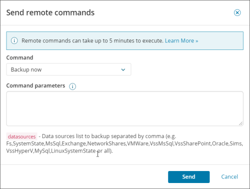 - Using the dropdown on the Send remote commands window, select the command you want to submit