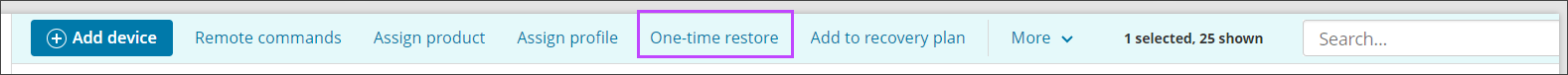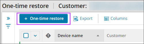 - Navigate to the One-Time Restore overview by selecting Continuity > One-time Restore from the vertical menu on the left hand side