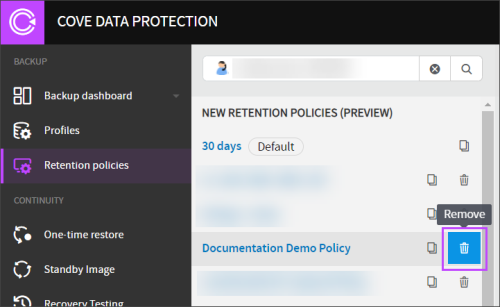 - Confirm your intention to delete the policy by clicking Remove on the Remove Retention Policy pop-up