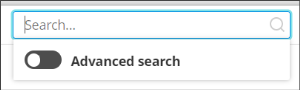 Searching within the dashboard is done by clicking into the search box on the right-hand side of the Toolbar. You can switch between basic and advanced searching by using the toggle below the text box. By default, the search will open in the basic search mode.