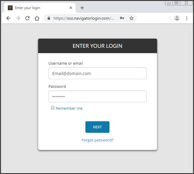 Single Sign-On URL Access https://sso.navigatorlogin.com