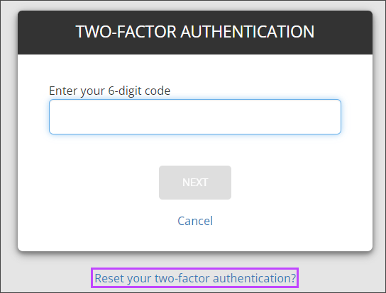 - When presented with the prompt for your MFA code, click the Reset your two-factor authentication? link