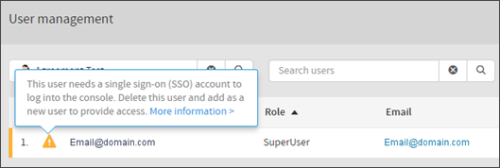 The user may receive a message that their email address already exists in the Single Sign-On server. This can occur where the email address is also in use as a login for one of our other SSO utilizing MSP solutions (including N-able Remote Monitoring & Management and N-able MSP Manager).
