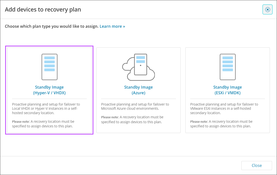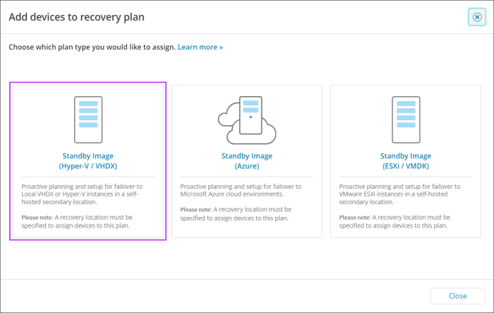 Devices can be assigned to multiple Standby Image plans at once, i.e. Standby Image to Hyper-V and Standby Image to Azure.