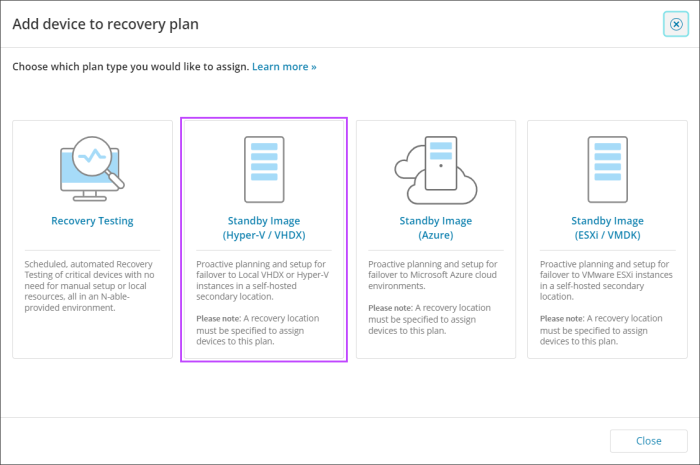 Devices cannot be added to a Standby Image plan if already assigned to a Recovery Testing plan.