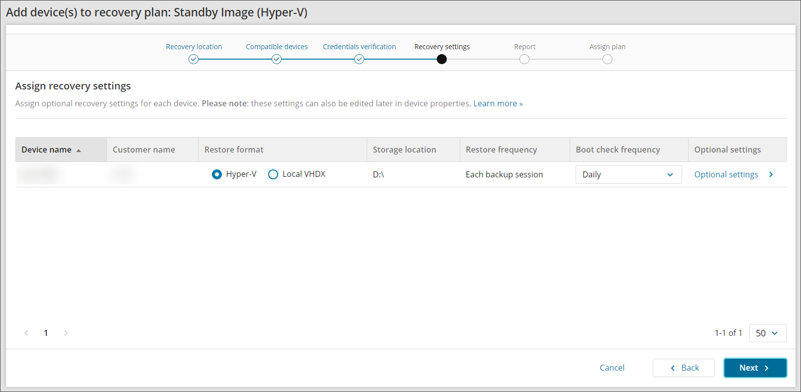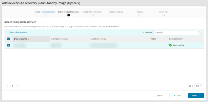 - You will now be taken to the add devices to recovery plan wizard. Follow the steps from select the customer from the dropdown onwards