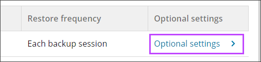 - Configure the Optional Recovery Settings for the restore format selected by clicking Optional Settings to the right of the storage location: