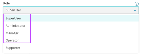 - Set the user role to SuperUser, Administrator, Manager or Operator