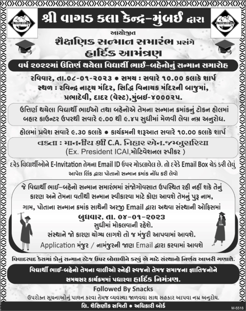 દ્વારા આયોજીત શૈક્ષણિક સન્માન સમારંભ વર્ષ ૨૦૨૨
