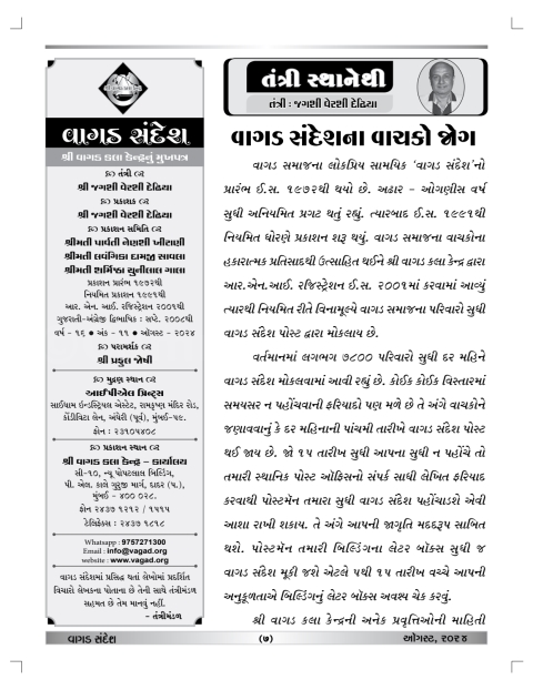 વાગડ સંદેશ: ઓગસ્ટ ૨૦૨૪